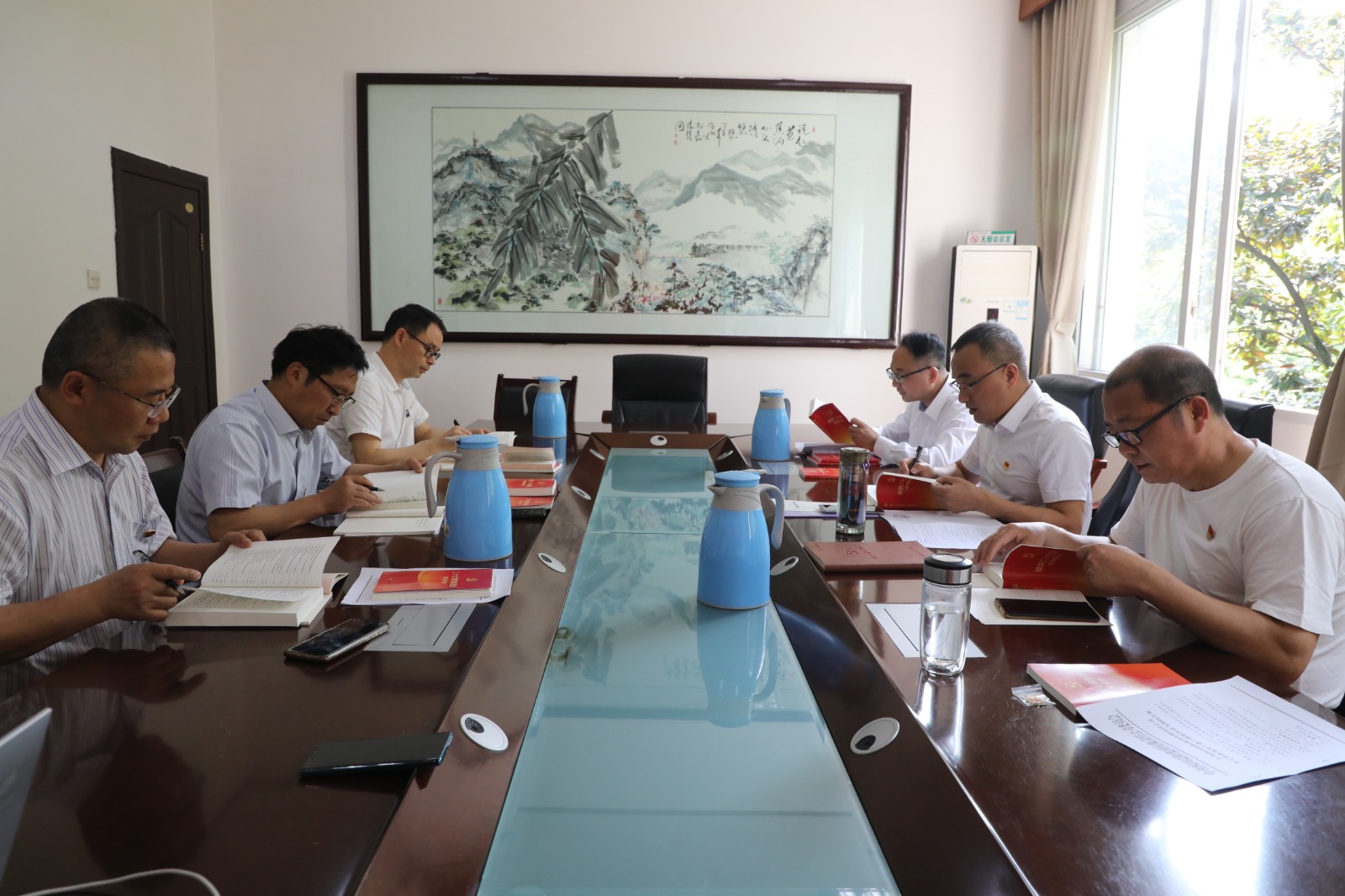 黨委副書記謝建國作具體安排,主題教育讀書班從4月17日開始到4月21日結束,共分為5期。通過集中自學、集中研討等形式開展,學習內容分為必讀書目和選讀書目,必讀書目為《黨的二十大報告》《中國共產黨章程》《習近平著作選讀》《習近平新時代中國特色社會主義思想專題摘編》。選讀書目為《習近平新時代中國特色社會主義思想學習綱要》《論黨的自我革命》《習近平新時代中國特色社會主義思想的世界觀和方法論》等內容。