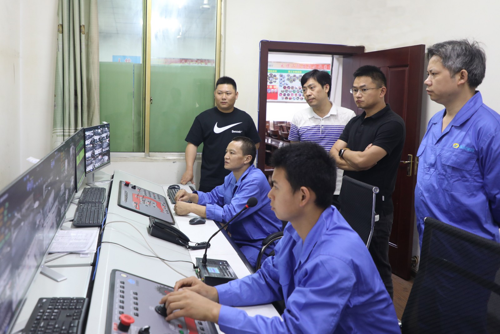 全隊12名采煤機司機利用近期生產推進時段深入強化實操培訓,輪流就坐于地面遠程操控平臺的兩個機位前,分別負責采煤機和支架操控。采煤生產過程中,兩個司機各司其職,細心觀察電腦顯示器上現(xiàn)場實時生產畫面及全系統(tǒng)各類圖形和數(shù)據(jù),不時根據(jù)煤層起伏調整采煤機刀筒高度,對采煤工作面進行遠程規(guī)劃割煤,配合觀察調整采煤機、支架、刮板運輸機三機自動跟機系列操作。循環(huán)生產中,廠家工程技術人員根據(jù)設備運行工況及生產變化,實時指導司機調整操控,確保正常推進和采場平直。
