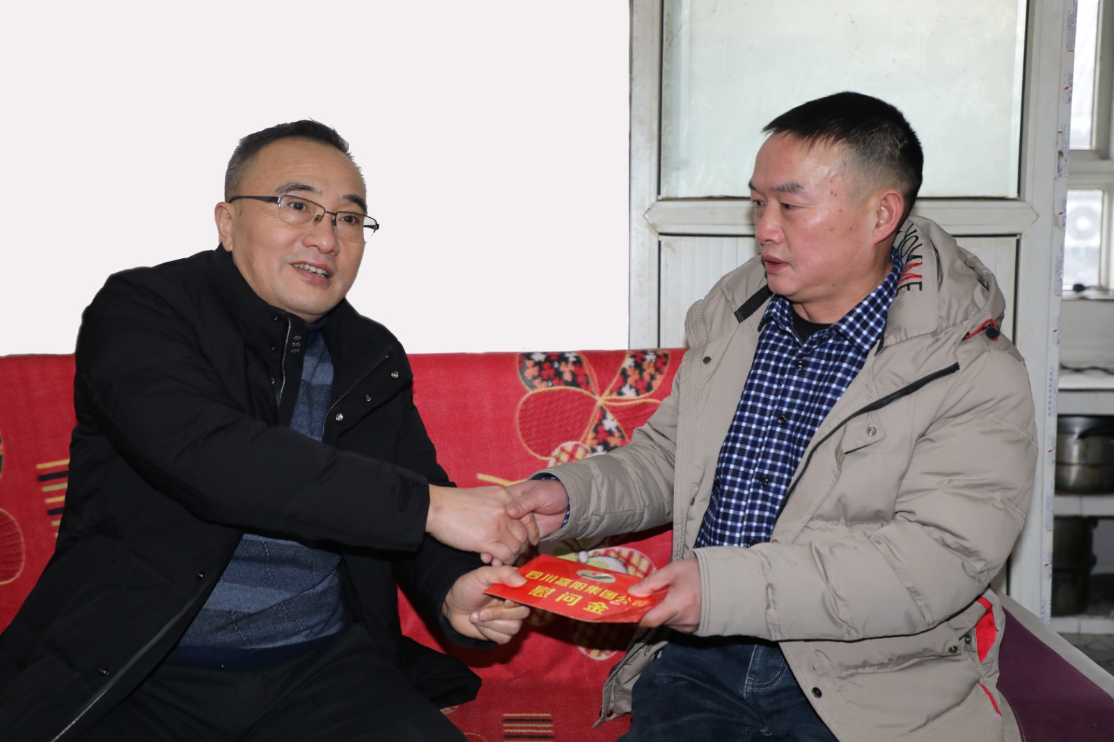 在石溪8號(hào)樓,黨委副書記、總經(jīng)理范勤英看望慰問嘉陽煤礦掘進(jìn)工鄧先平,鄧先平因妻子和女兒都身患重疾,個(gè)人收入也不高,精神壓力比較大,范勤英耐心傾聽鄧先平心聲,給予他安慰和鼓勵(lì),希望他正確面對(duì)困難和壓力,全家人要一起過一個(gè)平安祥和的春節(jié)。