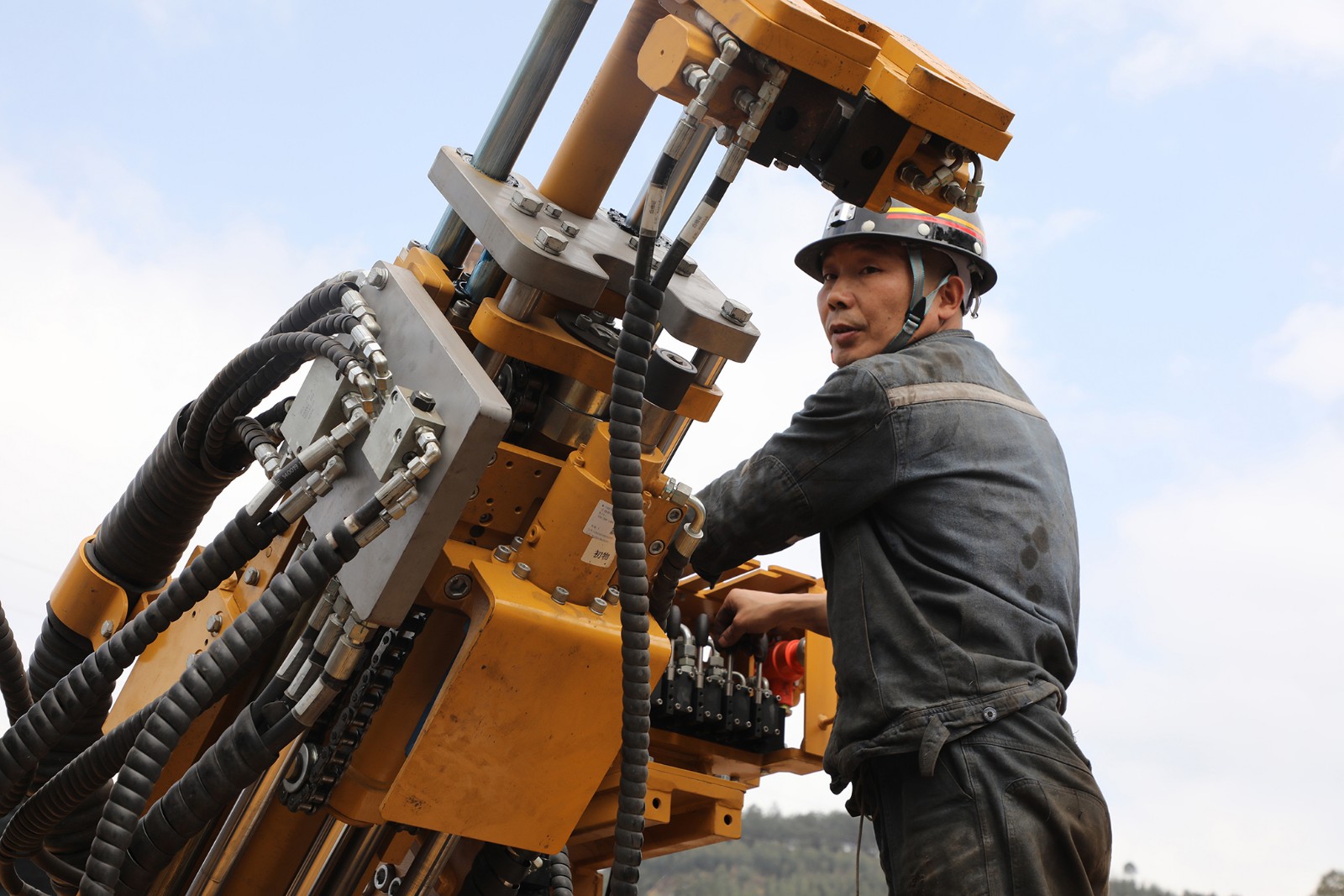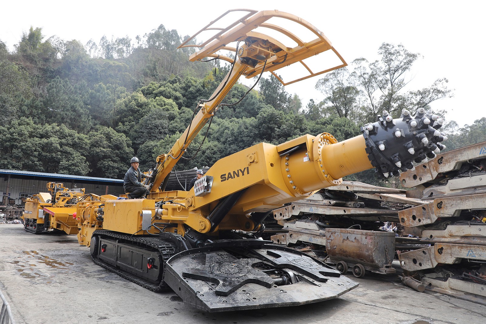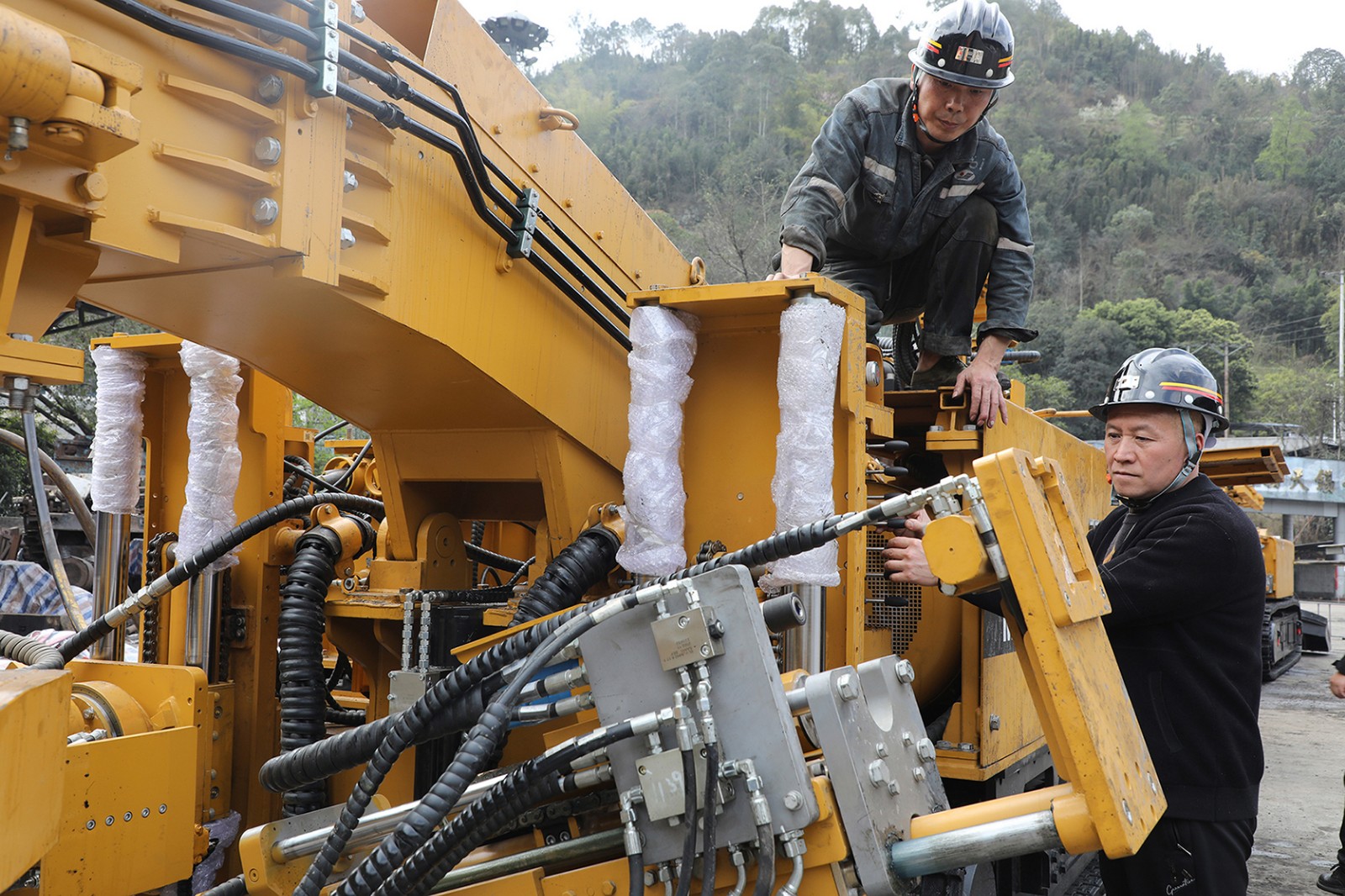 組裝成型后的兩臺(tái)主要設(shè)備按照正常生產(chǎn)工藝在工業(yè)廣場(chǎng)前后排列開(kāi)始通電調(diào)試,職工在廠(chǎng)家技術(shù)員指導(dǎo)下,主要察看設(shè)備部件旋轉(zhuǎn)、升降、移動(dòng)工況,細(xì)心查找組裝瑕疵,試用本機(jī)操控和遠(yuǎn)程遙控控制設(shè)備運(yùn)行。目前,掘進(jìn)一隊(duì)在具備普通綜掘機(jī)生產(chǎn)經(jīng)驗(yàn)的基礎(chǔ)上,采取設(shè)備調(diào)試與實(shí)操訓(xùn)練同步的方式助力職工盡快進(jìn)入角色。