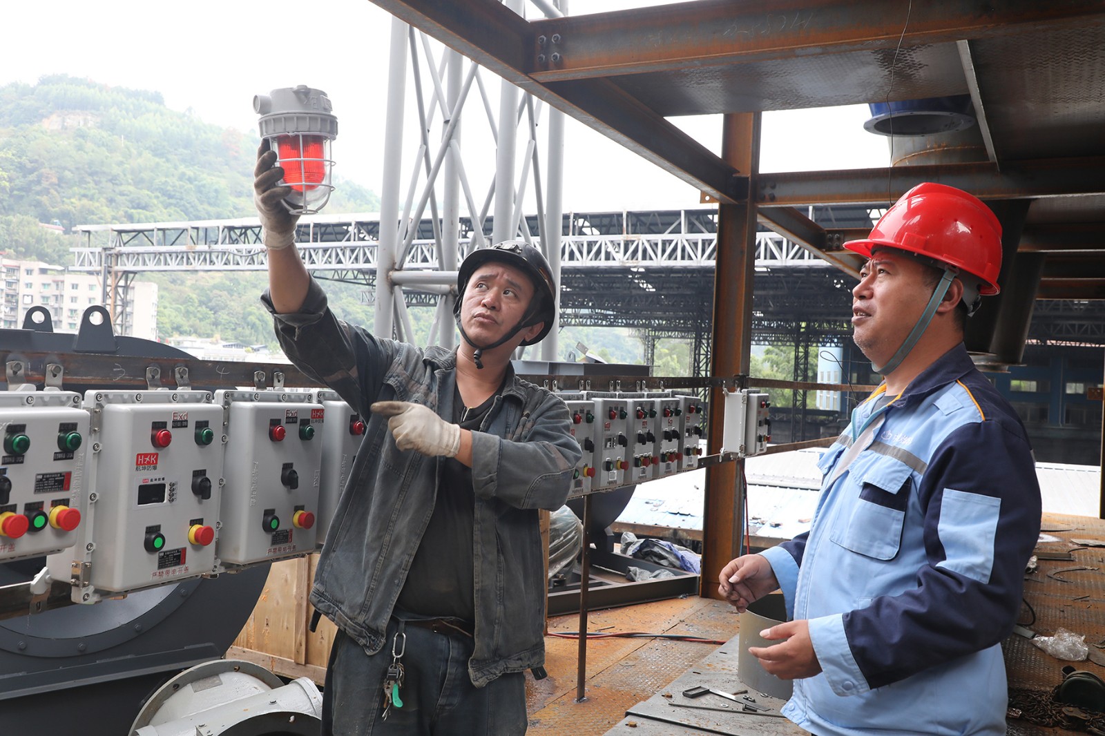 自SID-500型風力干選機及其配套組件抵達后,一場精心籌備的技術革新戰(zhàn)役正式打響。因工程建設選址于原風選系統(tǒng)位置,新系統(tǒng)的搭建存在空間受限、標件改非標件多和工程時間緊等困難,眾多連接構件與拐點設計需現(xiàn)場拼接組裝,從材料切割、尺寸調整,到框架拼裝、精度校驗,直至最后的焊接固定,每一步都考驗著施工人員的專業(yè)素養(yǎng)與協(xié)作能力。安裝工作啟動以來,機電制造維修分公司抽調精兵強將,冒著安裝現(xiàn)場超過40℃的高溫,發(fā)揚連續(xù)作戰(zhàn)的精神,完成主機吊裝、鋼結構平臺等安裝;國慶假期,洗選廠電鉗工隊伍加入戰(zhàn)斗行列,與機電制造維修分公司并肩作戰(zhàn),明確職責、高效配合,煤炭分選、除塵凈化、物料傳輸及自動化控制設備逐一落成,一座融合現(xiàn)代工藝美學與實用性功能的四層立體煤炭風選車間拔地而起,電氣主控室在地面落成,煤炭流轉通道連接到位,現(xiàn)代化的煤炭風選生產(chǎn)車間印入大眾眼簾。