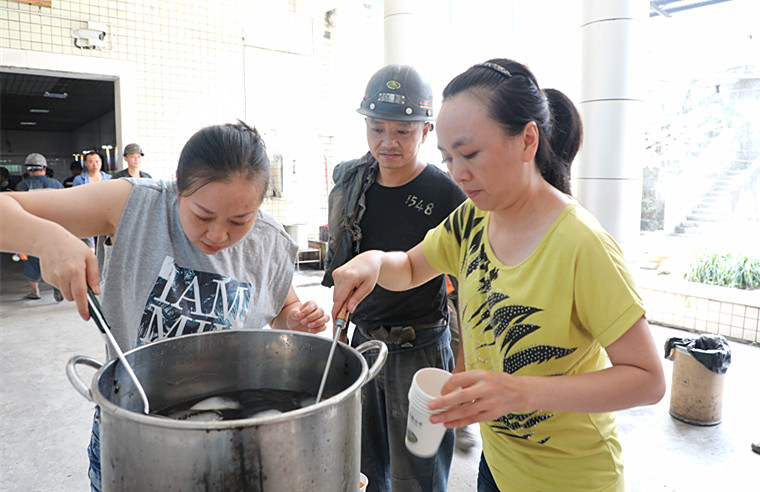 26日下午,煤礦女工委也組織開展了“送清涼”活動,女工們將制好的冰粉送到天錫井井口,送到煤礦出入井職工手中,在“送清涼”的同時不忘叮囑下井職工注意安全。據(jù)煤礦女工委的同志介紹這樣的活動她們還會在炎熱的夏天持續(xù)開展。除了定點送冰粉,還為每個車間配備了藿香正氣水、風(fēng)油精等防暑降溫藥品,采取多種措施落實防暑降溫和勞動保護(hù)工作,切實保障廣大職工的身體健康,促進(jìn)公司的安全生產(chǎn)。