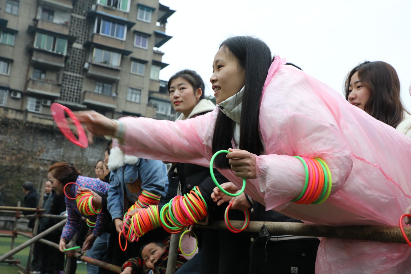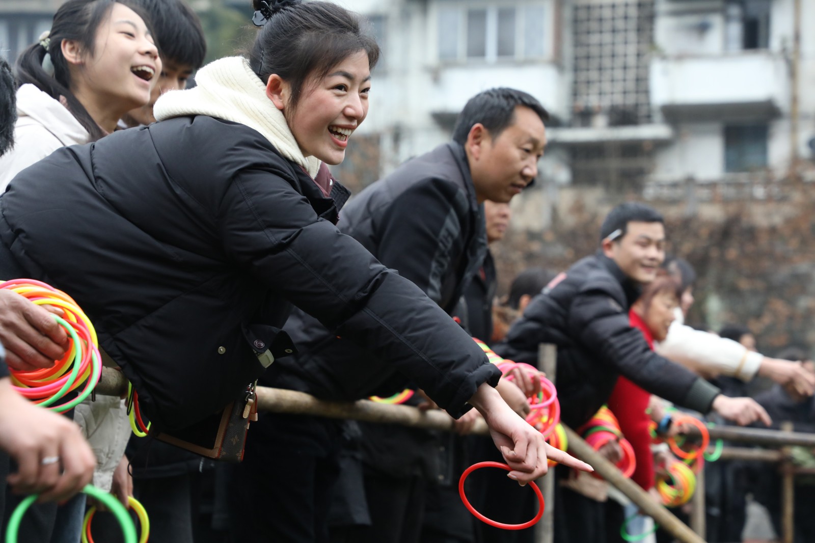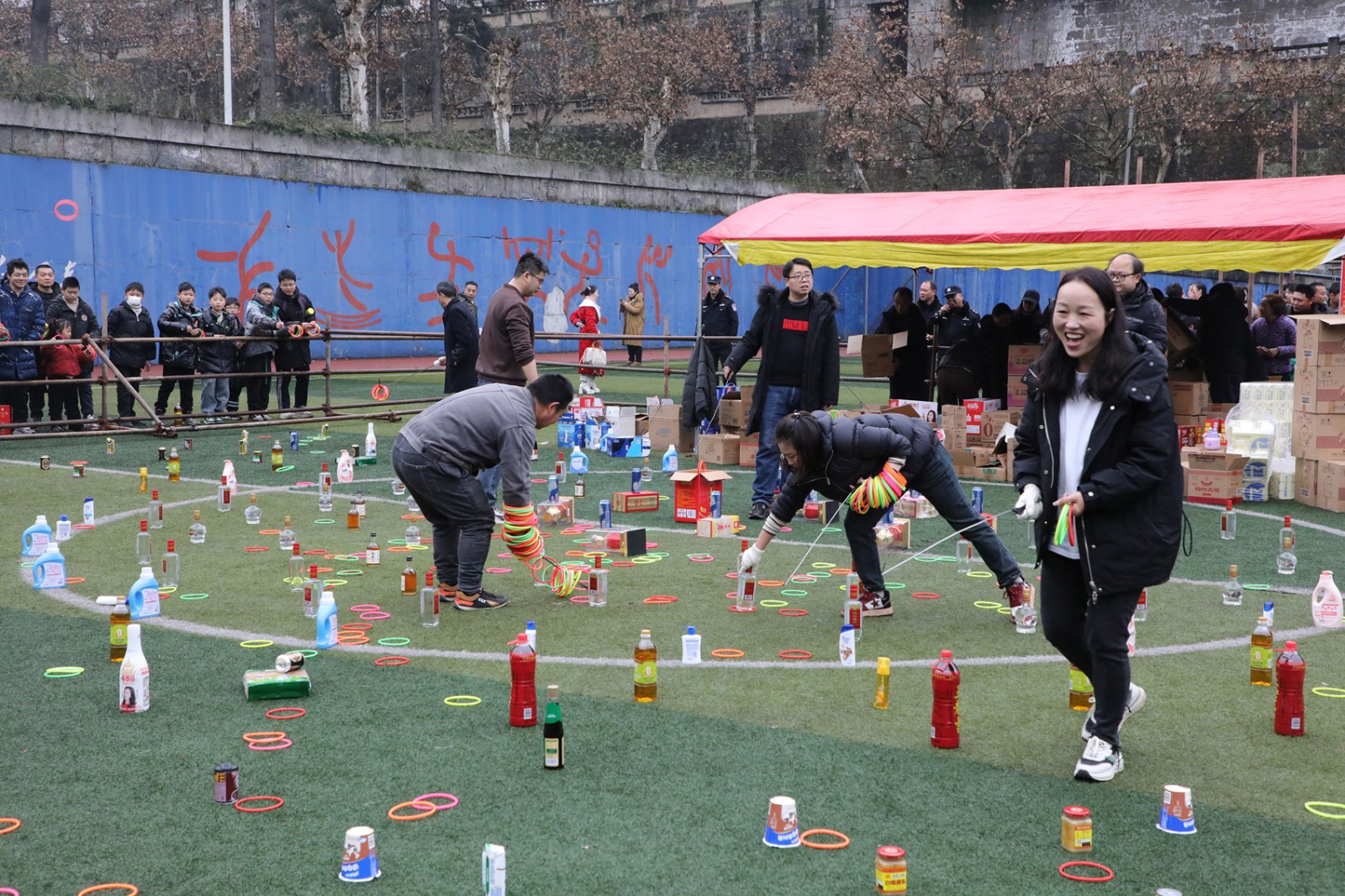 礦區(qū)足球場和芭溝老礦區(qū)分會場的實物套圈活動同樣人氣爆棚。“甩遠點,套瓶好酒!”套圈場地被圍得水泄不通。職工家屬們手持套圈,神情專注,朝著心儀的獎品奮力投出。每當有人成功套中目標,周圍便傳來陣陣喝彩聲,現(xiàn)場氣氛熱鬧非凡。
