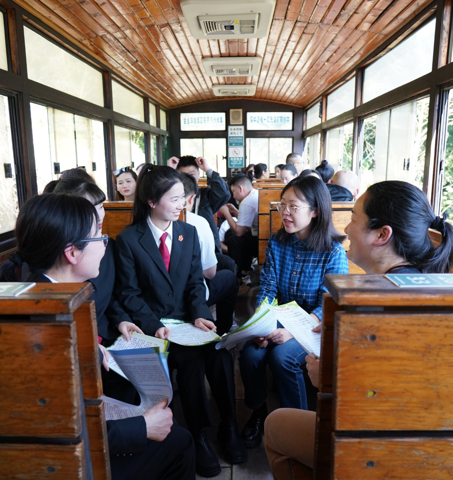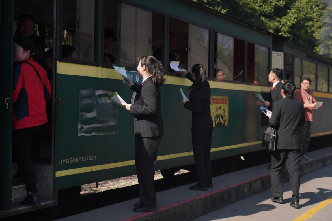 活動當(dāng)天,法官們登上嘉陽小火車,將車廂變?yōu)?/span>“移動普法課堂”,結(jié)合《環(huán)境保護(hù)法》《民法典》中生態(tài)環(huán)境侵權(quán)責(zé)任條款,隨著火車徐徐前進(jìn),向游客們講解環(huán)境污染防治、生態(tài)破壞法律責(zé)任等法律知識,并發(fā)放圖文并茂的普法宣傳冊。