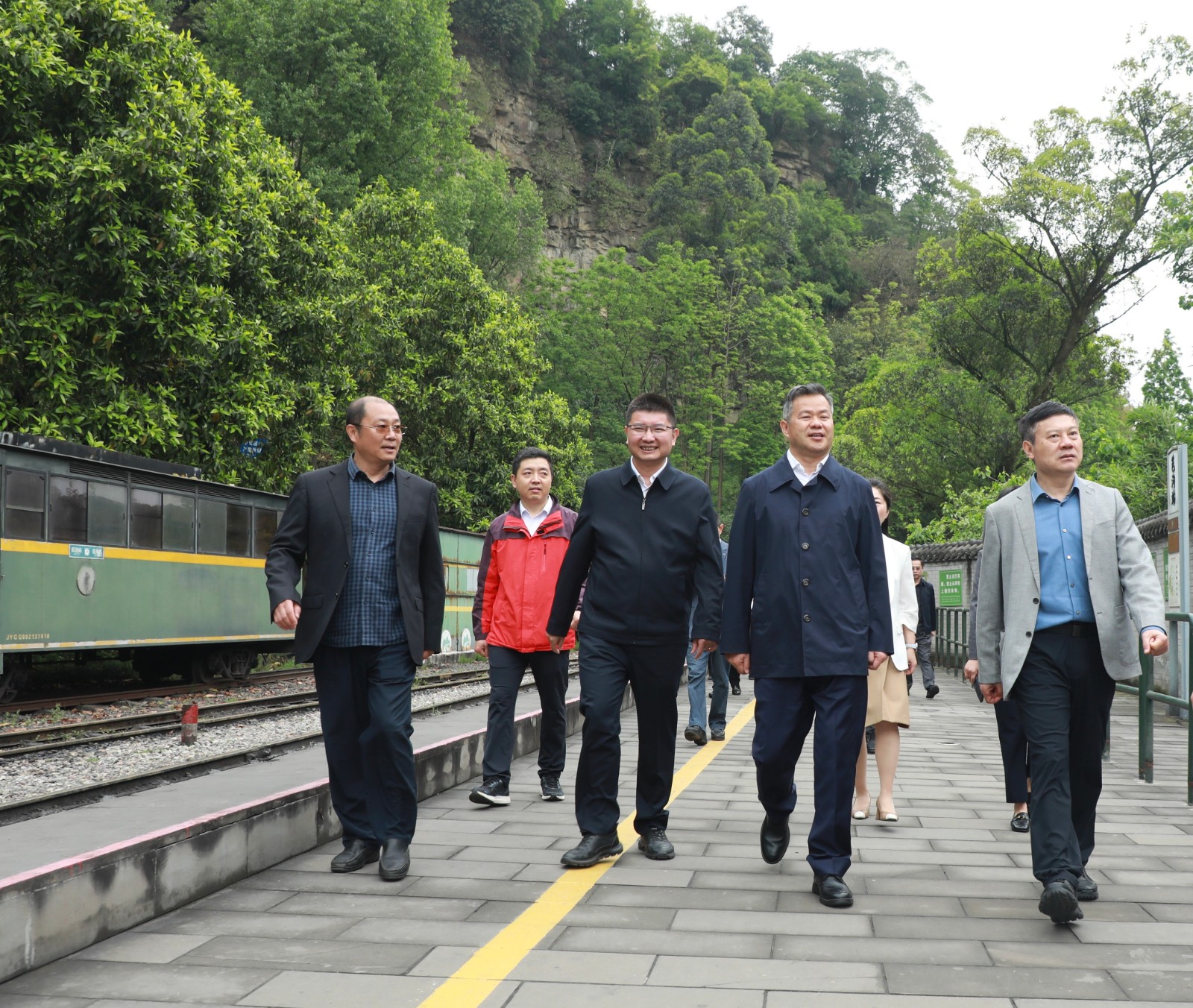 4 月 24 日,民革中央副主席、省政協(xié)副主席、民革四川省委會主委歐陽澤華率隊來到芭蕉溝,深入調研嘉陽文旅融合及全國民革黨員教育基地建設等情況。集團公司黨委副書記、總經理范勤英全程陪同。