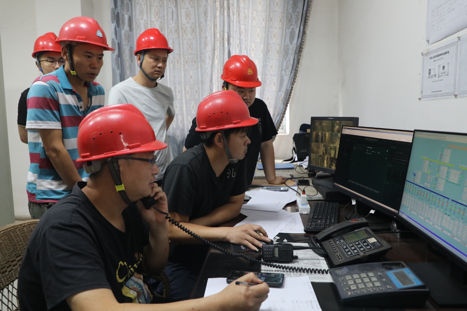 下午15點(diǎn)30分,試驗(yàn)正式啟動(dòng),機(jī)電副礦長(zhǎng)宋義強(qiáng)擔(dān)任總指揮。按照試驗(yàn)方案,操作人員迅速斷開(kāi)6千伏二段供電線路與礦井主通風(fēng)機(jī)等一級(jí)用電設(shè)備,通過(guò)智能化應(yīng)急供電系統(tǒng)電腦開(kāi)啟應(yīng)急保電模式。15時(shí)41分,系統(tǒng)依次為主通風(fēng)機(jī)、井下局部通風(fēng)機(jī)等一級(jí)用電設(shè)備供電,帶載穩(wěn)定運(yùn)行1小時(shí)后,啟動(dòng)地面瓦斯發(fā)電站發(fā)電機(jī)組成功實(shí)現(xiàn)并網(wǎng),確認(rèn)應(yīng)急保電模式運(yùn)行正常。17時(shí)許,操作人員切斷其他非主要用電線路,全面檢測(cè)其對(duì)應(yīng)供電設(shè)備的可靠性,確保應(yīng)急電源精準(zhǔn)服務(wù)礦井主要用電設(shè)備。當(dāng)天,還進(jìn)行了啟動(dòng)儲(chǔ)能系統(tǒng)變壓器對(duì)主通風(fēng)機(jī)變頻器影響試驗(yàn),并順利恢復(fù)礦井正常供電。