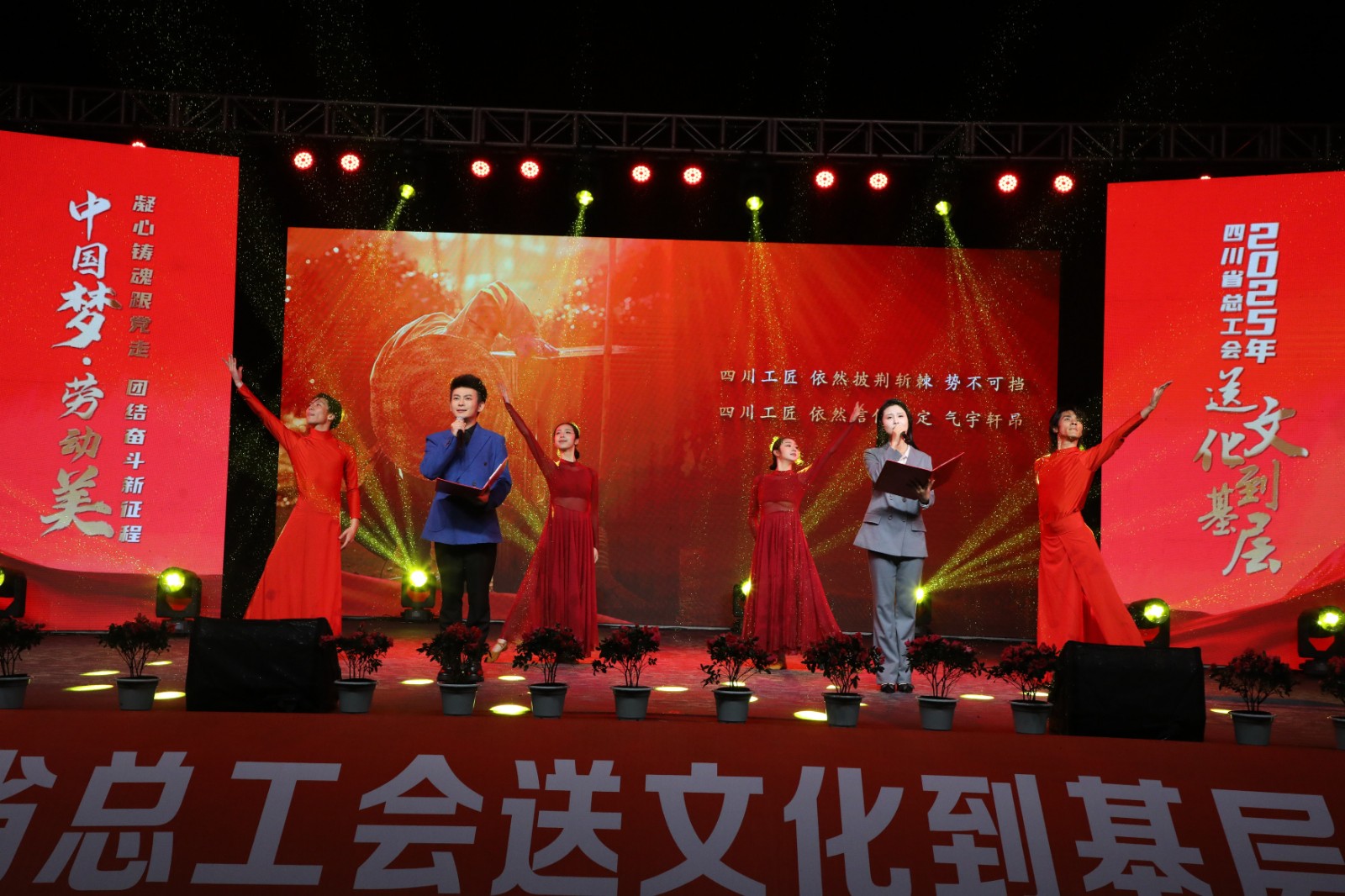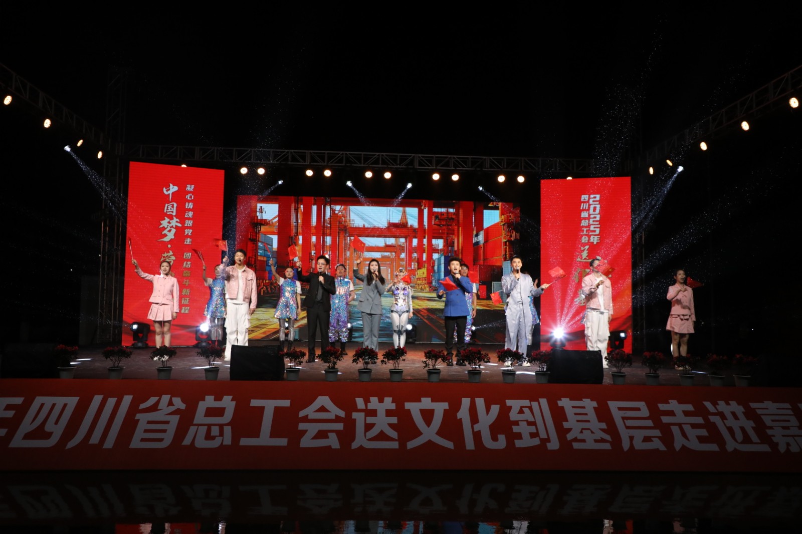 10月22日晚,由四川省總工會(huì)主辦、四川能源發(fā)展集團(tuán)承辦,嘉陽(yáng)集團(tuán)協(xié)辦的“中國(guó)夢(mèng)·勞動(dòng)美——凝心鑄魂跟黨走 團(tuán)結(jié)奮斗新征程”2025年四川省總工會(huì)送文化到基層活動(dòng)走進(jìn)嘉陽(yáng)集團(tuán),在風(fēng)雨交織中為廣大職工及家屬帶來(lái)了一場(chǎng)精彩紛呈的晚會(huì)。