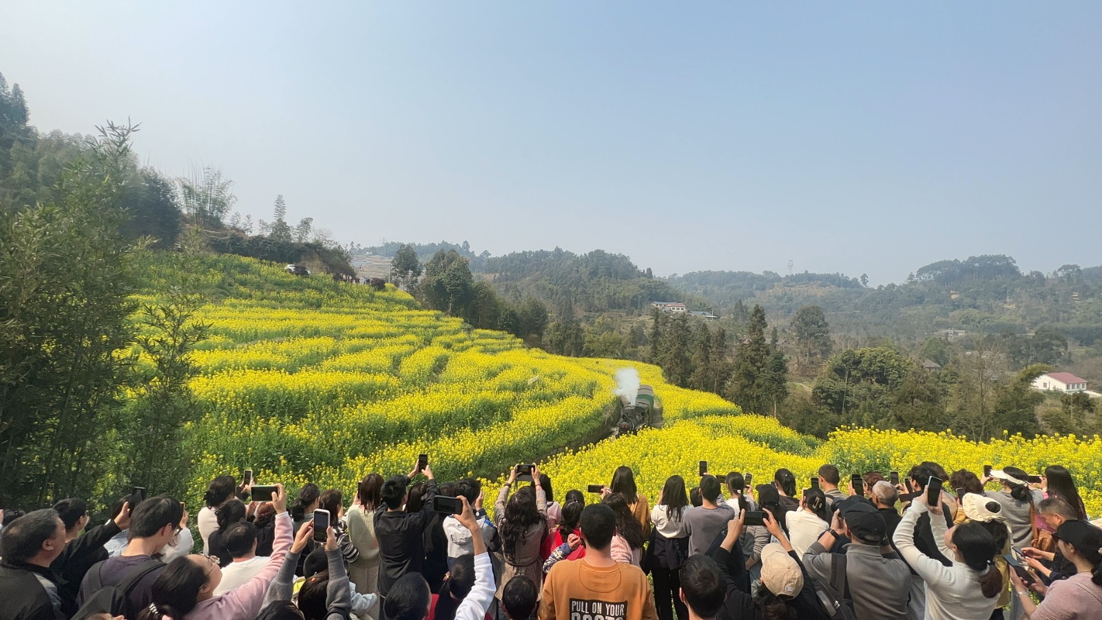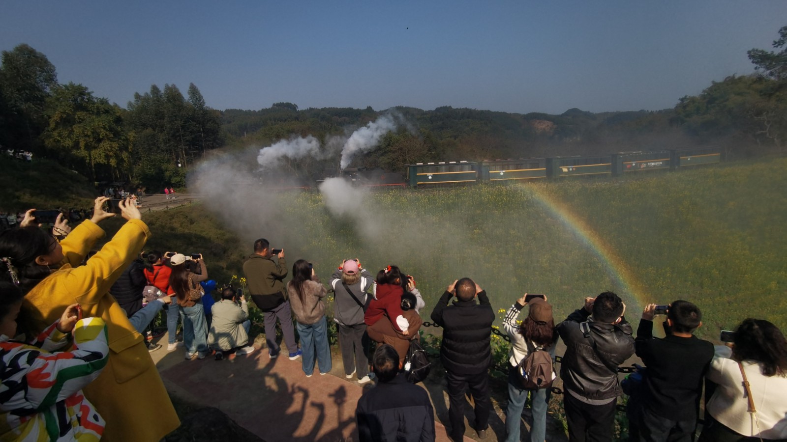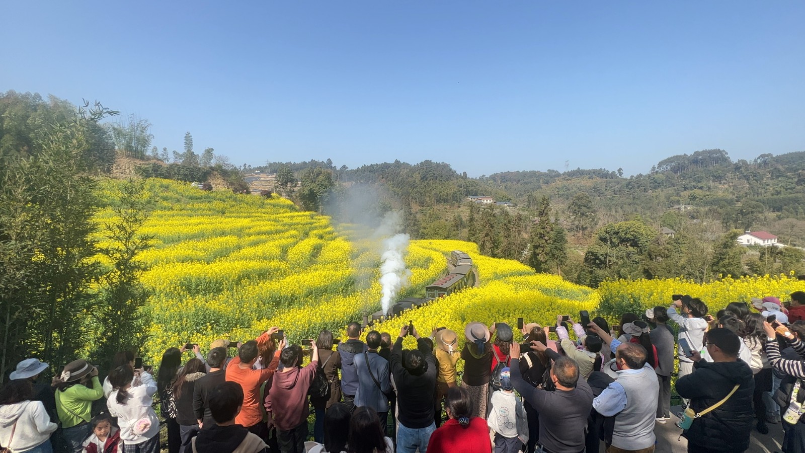 春節(jié)假期與油菜花期重疊,新產(chǎn)品引爆市場。段家灣“蓉早油七號”油菜花如期綻放,游客可沉浸式體驗(yàn)蒸汽火車穿越油菜花海的經(jīng)典畫面,成為社交媒體傳播熱點(diǎn),有力拉動游客量激增。