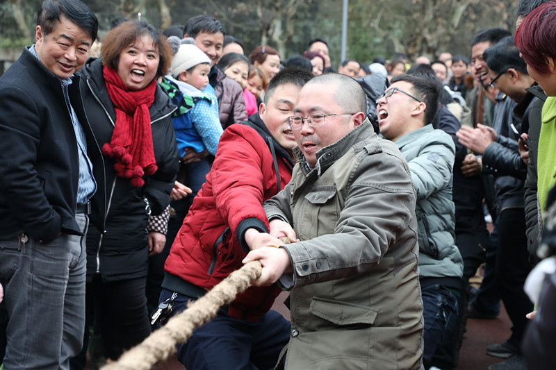 這邊的文藝演出就快接近尾聲另一邊的職工拔河比賽又開始了。22支隊伍依次上陣,兩兩對抗。裁判哨聲一響參賽隊員們各個全神貫注,身子下蹲蹬起八字腳,憋足了勁拼命往后拉,“加油、加油!”號子聲、吶喊助威聲此起彼伏,勢均力敵的兩隊之間較量尤為精彩,懸殊較大的兩個隊對抗也能讓人捕捉到笑點,拔河現(xiàn)場是里三層外三層圍滿了觀眾,可謂是觀賞性、參與性最高的項目。整個鬧元宵活動在熱烈、喜慶的氛圍中完美收場。