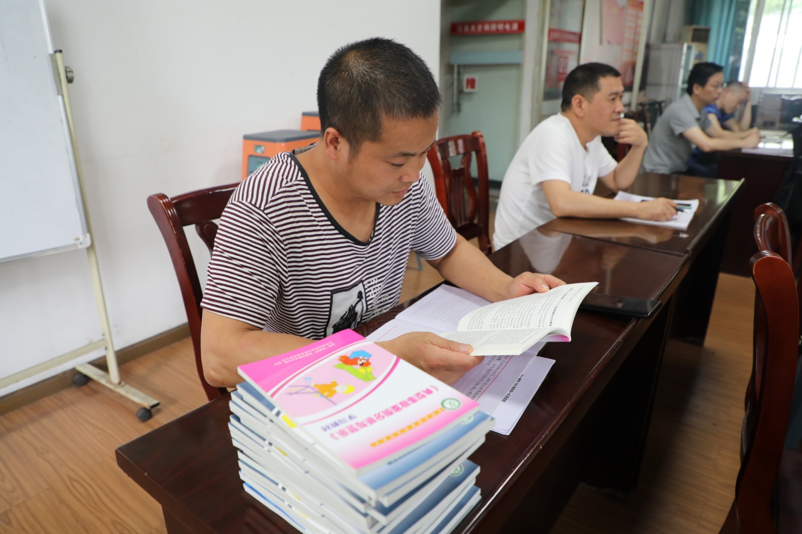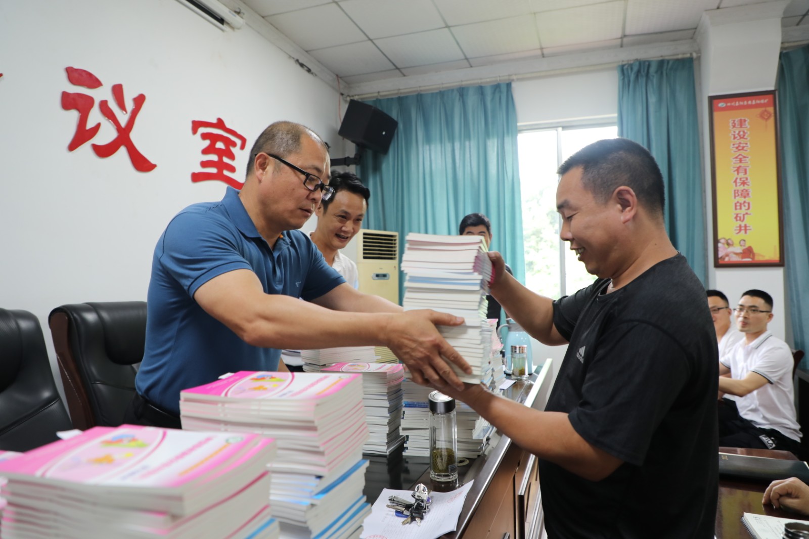 《“六型”班組安全創(chuàng)新與提升》《典型事故案例分析與警示》《班組長安全生產(chǎn)》三本書是工會根據(jù)公司具體情況精心挑選的安全類書籍。嘉陽集團總經(jīng)理范勤英將一摞摞書發(fā)放到了煤礦11個隊站的隊長手中,他一邊發(fā)放一邊叮囑隊長們務(wù)必要將每本書發(fā)放到每個班組長手中,督促他們充分利用工余時間進行學(xué)習(xí),一定要做到學(xué)以致用,不斷加強職工安全意識,進一步提升職工安全技能,促進全礦安全生產(chǎn)。對于煤礦安全,范總提出殷切希望:在監(jiān)管力度和強度越來越大的今天,唯有把安全放在首位,充分吸取他礦事故教訓(xùn),從細(xì)從小狠抓安全,時刻不能放松,安全既要入腦更要入心,實現(xiàn)自身安全,向建黨100周年獻禮!拿到書籍的隊長們迫不及待翻看起來,內(nèi)容實用易懂、案例讓人警醒是他們的普遍反映。
