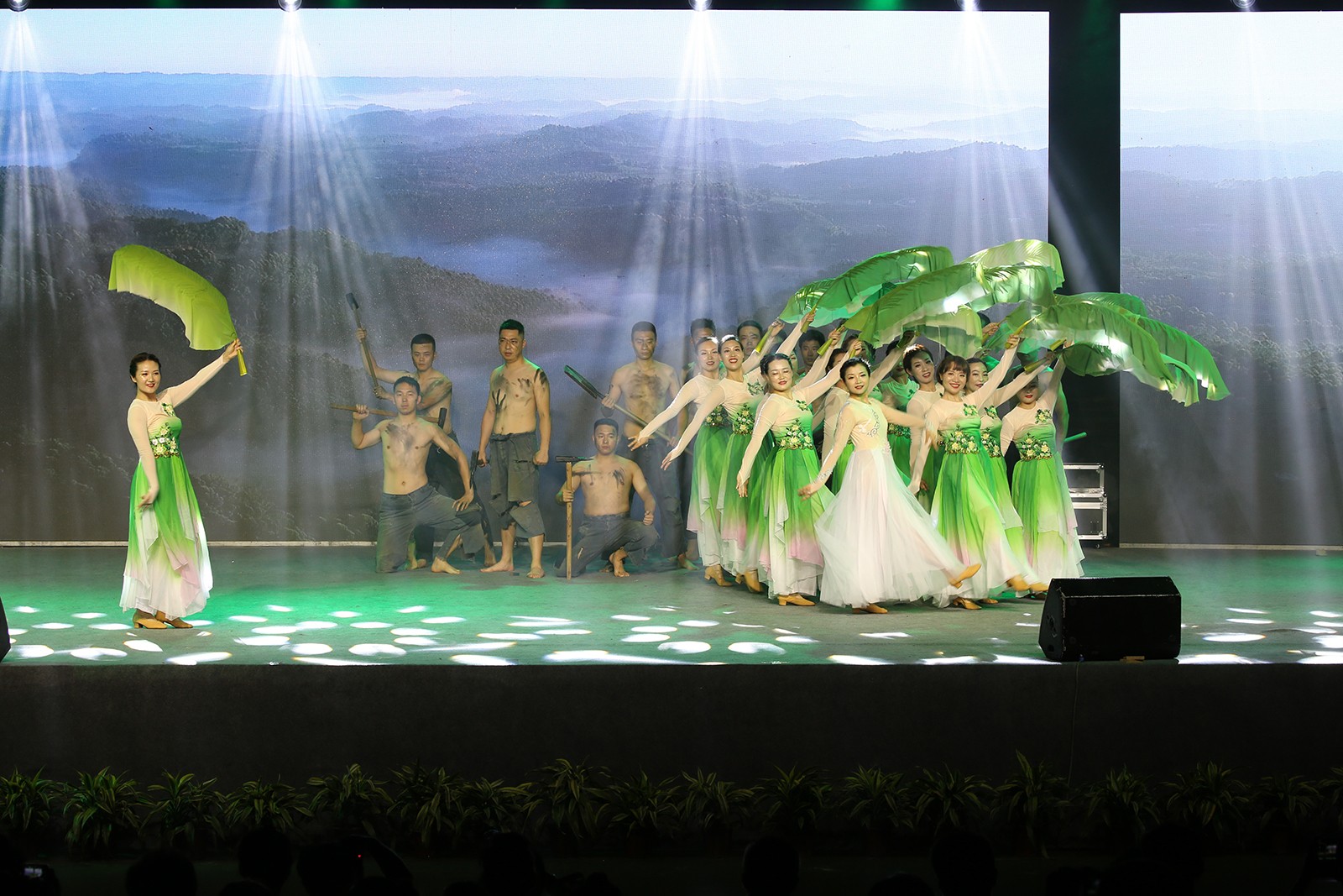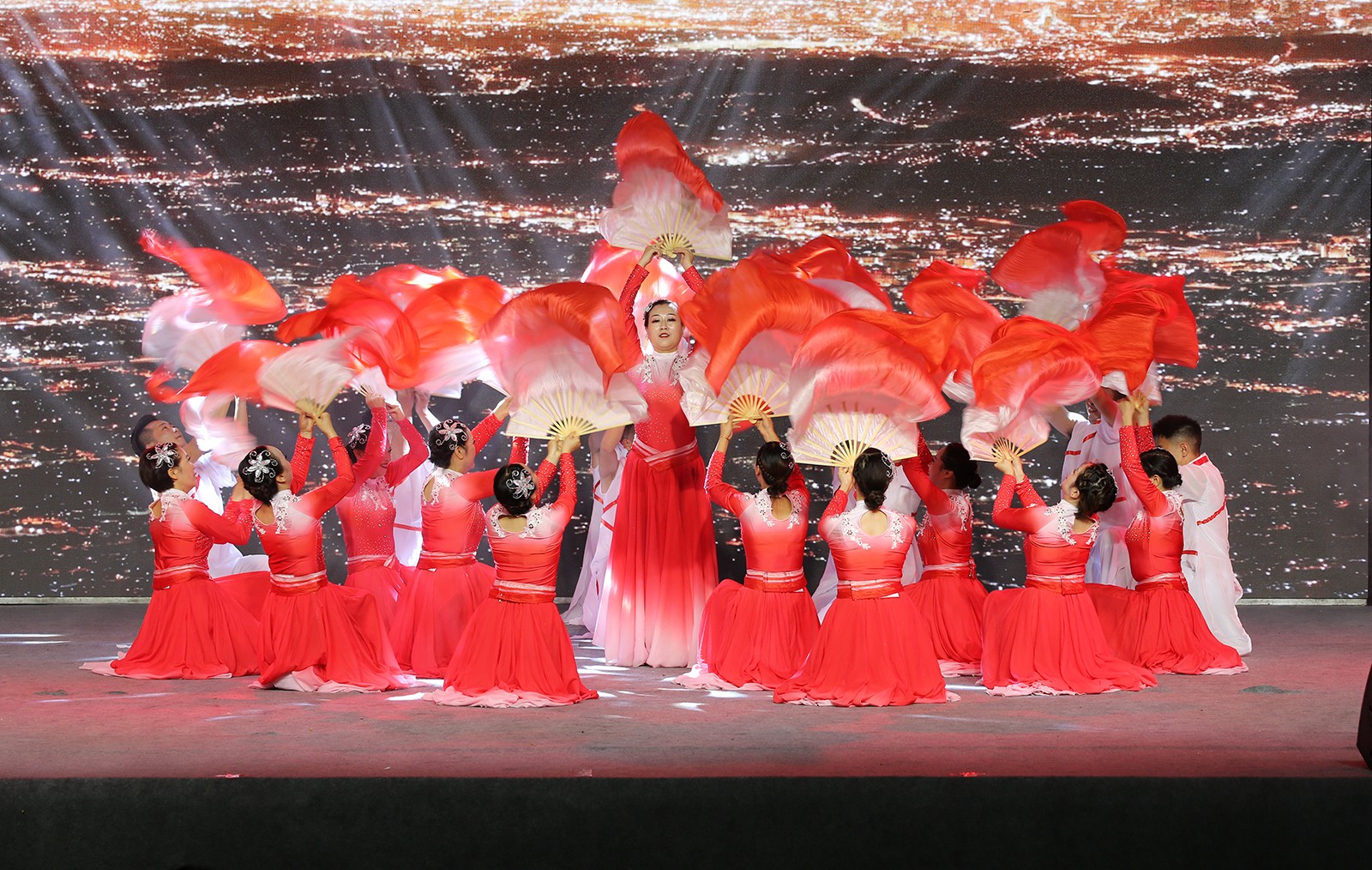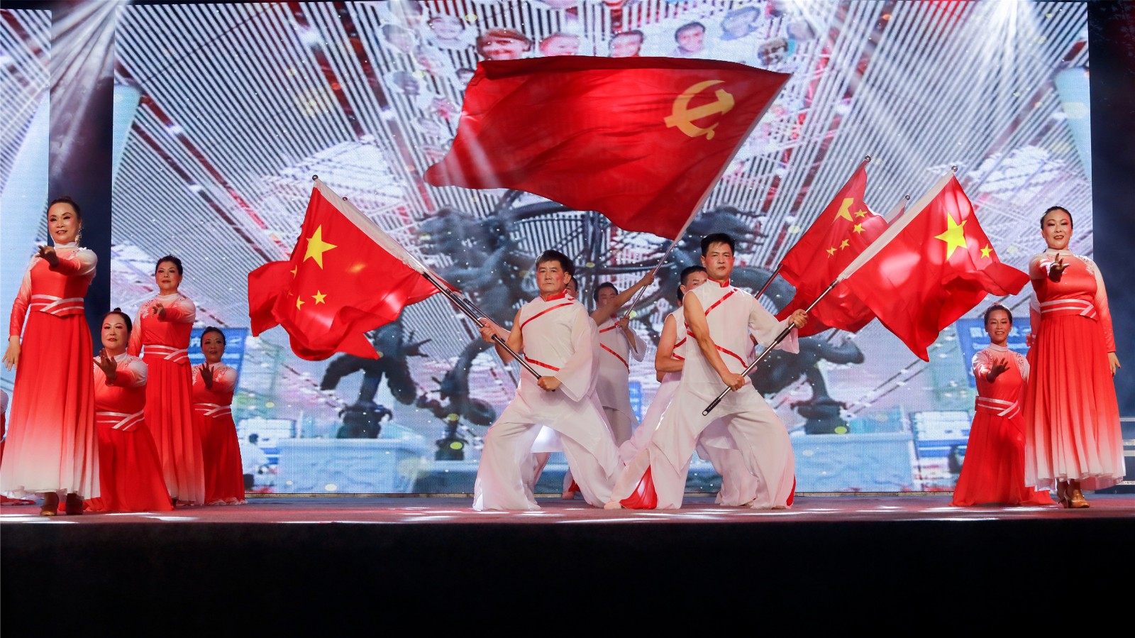 晚會在紅歌大聯唱中拉開帷幕,觀眾們隨著節(jié)奏揮舞著手中的小紅旗、熒光棒,整個體育場匯聚成了一片閃耀的紅色星海。舞蹈《再唱山歌給黨聽》《領航中國》、合唱《紅旗飄飄》《跟著共產黨走》、三句半《小芭蕉說黨史》、樂器合奏《盛世國樂》等16個精彩節(jié)目輪番上演,為現場觀眾帶來一場視覺盛宴和精神洗禮。詩朗誦《生命之花》深情并茂地謳歌了中國共產黨百年風雨歷程中的英雄、先鋒以及他們的獻身精神,贏得了觀眾陣陣掌聲。一首激越高昂的女聲獨唱《我和我的祖國》表達了對祖國的誠摯祝愿和對美好生活的無限期盼。大災面前有大愛,舞蹈《激流勇進》再現嘉陽志愿者團結一心、眾志成城抗洪救災,為犍為“8.18”災后重建貢獻嘉陽力量的動人場景。新時代征程無限光明,強國使命催人奮進,舞蹈《燃燒吧,嘉陽》將煤礦“燃燒精神”展現的淋漓盡致,煥發(fā)出獨特的時代魅力,傳承紅色基因,堅定理想信念,凝聚奮進力量,激勵嘉陽兒女砥礪前行再出發(fā)。