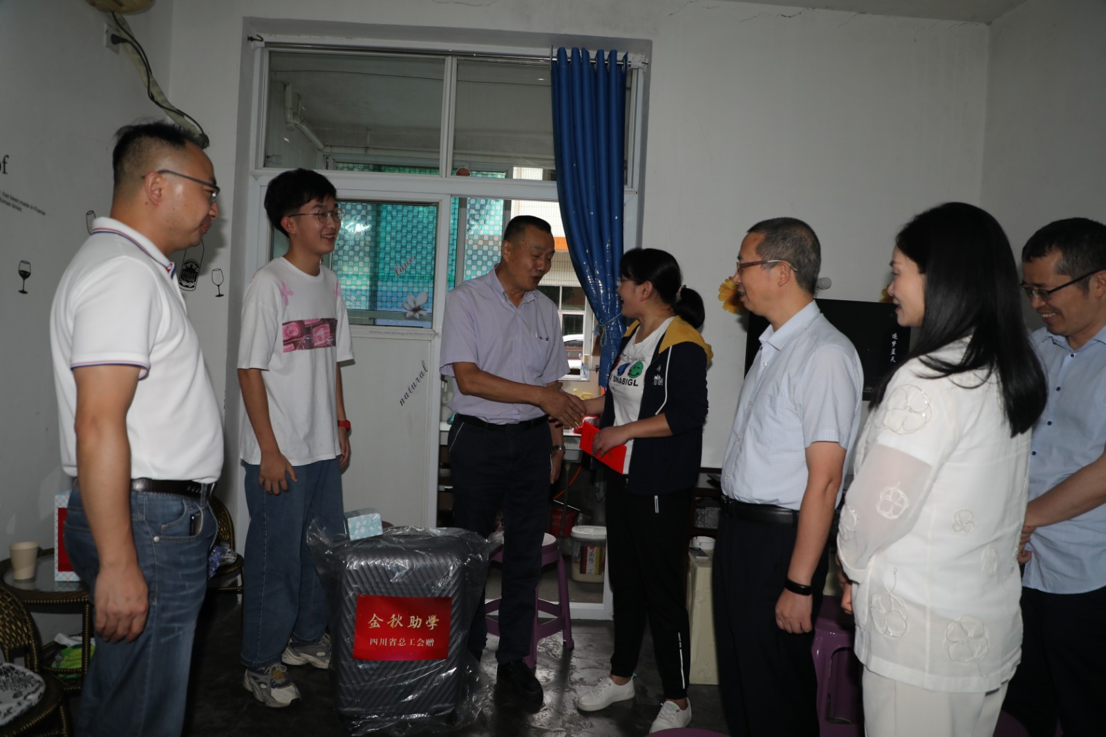 8月26日,四川省總工會(huì)二級(jí)巡視員陳黎一行冒著細(xì)雨來(lái)到嘉陽(yáng)困難職工家庭,看望慰問(wèn)即將入學(xué)的貧困大學(xué)生,為他們送去組織的關(guān)心和問(wèn)候。