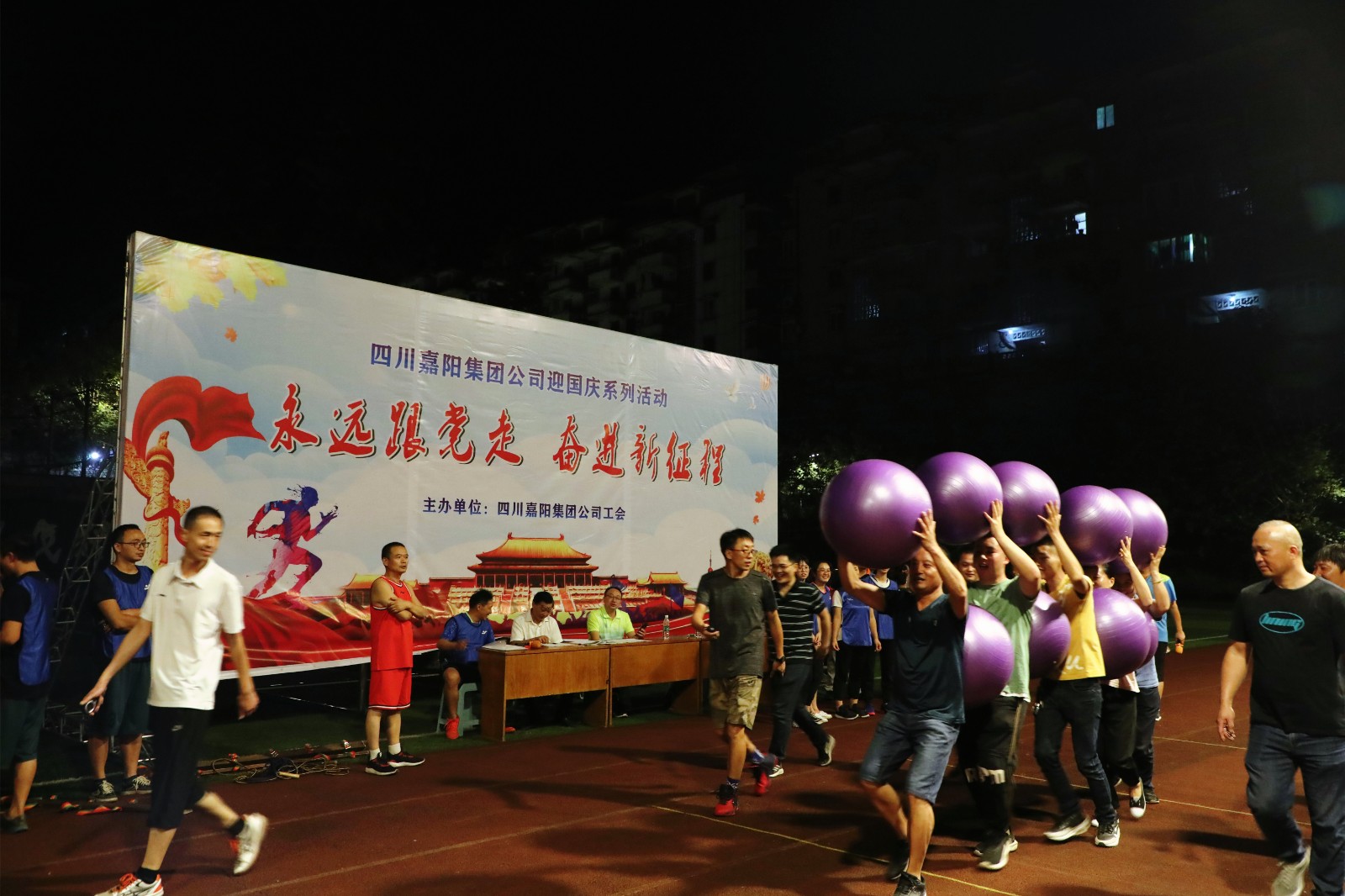 19時30分,“迎國慶”趣味項目活動開賽。賽場上,參賽的運動員以飽滿的激情、昂揚的斗志、團結向上的精神投入到滾鐵環(huán)接力、步調(diào)一致、螃蟹背西瓜、跳繩接力等趣味項目比賽中,精彩紛呈的競技項目中摻雜著一個個妙趣橫生的小插曲,使得整場活動都充滿了叫好聲和歡笑聲。各項比賽高潮迭起,隊員們通力合作,奮勇爭先,最終機關隊勇奪第一名,嘉陽煤礦、物資供銷公司分別獲得第二、第三名,公司黨委副書記謝建國為獲獎隊伍頒獎。