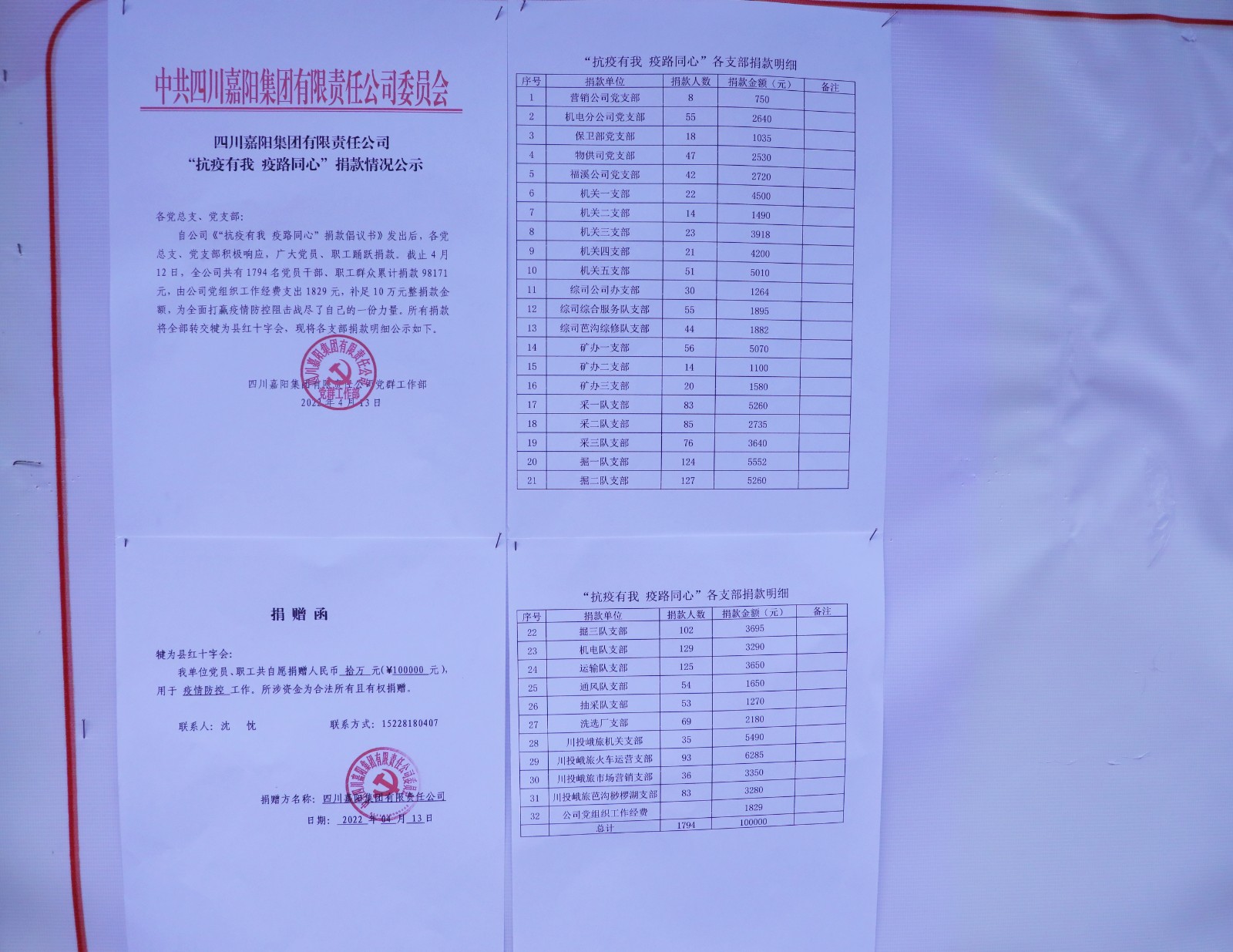 疫情爆發(fā)后,嘉陽集團一邊做好自身的疫情管控,一邊發(fā)動黨員、志愿者積極支援縣城防疫。公司黨委、工會在第一時間發(fā)出了“抗疫有我 疫路同心”捐款倡議,全體黨員和職工積極響應(yīng),發(fā)揚“一方有難、八方支援”的精神,通過微信支付、當面上交黨支部等不同方式踴躍捐款,助力疫情防控。點滴愛心匯聚汪洋,無私捐助凝聚真情,短短幾天時間內(nèi),就收到1794人捐款98171元。