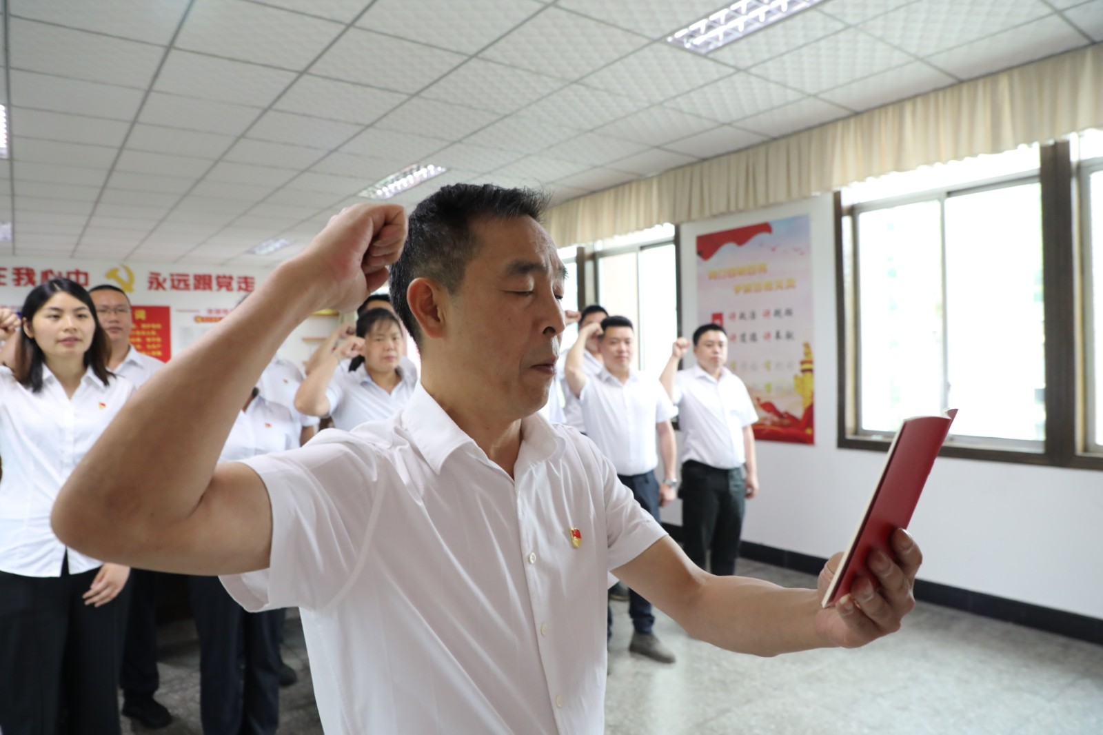 黨群工作部部長姚建軍代表公司黨委對新入黨的同志表示熱烈祝賀。他勉勵新黨員要牢記黨員身份,不忘初心使命,加強黨的理論學習,不斷提升黨性修養(yǎng);要強化業(yè)務技能學習,掌握個人本領(lǐng),為黨的事業(yè)和企業(yè)做出更大更多的貢獻;要立足崗位勤奮工作、廉潔奉公,嚴格遵守黨的紀律、國家法律法規(guī)、企業(yè)規(guī)章制度以及社會公德,清清白白做事,干干凈凈做人,充分發(fā)揮示范引領(lǐng)和先鋒模范作用,用實際行動展現(xiàn)共產(chǎn)黨員的先進性。