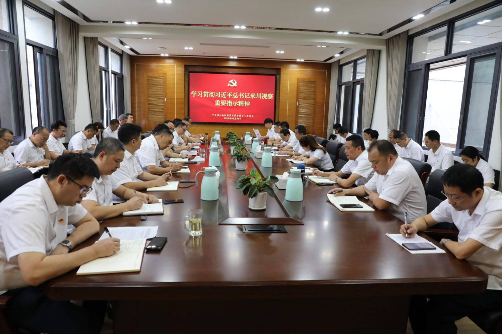 8月30日,集團(tuán)公司召開三季度黨建工作會,公司全體黨支部書記,黨群、紀(jì)檢部門負(fù)責(zé)人集中學(xué)習(xí)習(xí)近平總書記來川視察重要指示精神。黨委副書記、工會主席謝建國安排強(qiáng)調(diào)近期黨建工作。