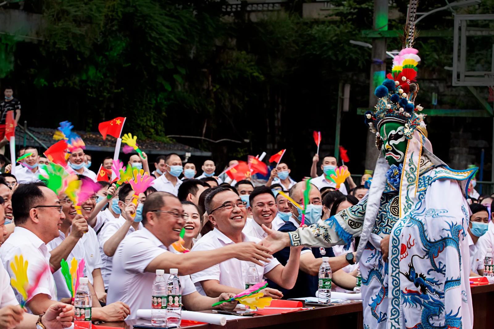 晚會(huì)在舞蹈《我和我的祖國》中拉開序幕,女聲獨(dú)唱《不忘初心》、紅歌聯(lián)唱《山丹丹花開紅艷艷》、群舞《萬疆》為黨的101歲生日祝福,現(xiàn)場觀看高難度的雜技《征途》更覺驚險(xiǎn)和精彩,節(jié)目川劇《變臉》《機(jī)器舞》《我是大民星》等互動(dòng)性節(jié)目讓臺(tái)下觀眾也有滿滿的參與感,二人相聲《贊歌獻(xiàn)給黨》、散打評書幽默風(fēng)趣,整臺(tái)晚會(huì)內(nèi)容豐富,贏得了觀眾的陣陣笑聲和掌聲。